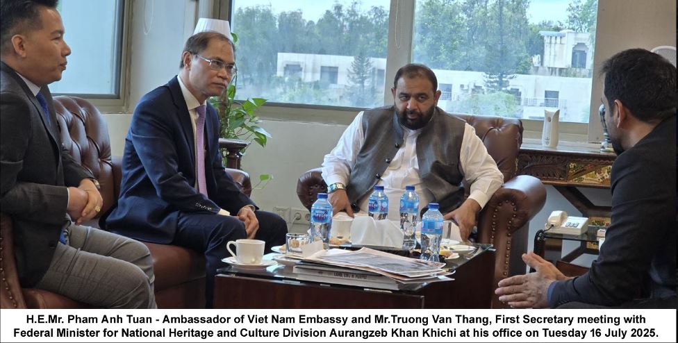 The proposal was put forth Wednesday by H.E.Mr. Pham Anh Tuan – Ambassador of Viet Nam Embassy and Mr.Truong Van Thang, First Secretary, during a meeting with Pakistan’s Minister for National Heritage and Culture, Mr. Aurangzeb Khan Khichi.